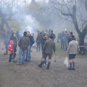 Hierfür wurde ein getrockneter Holzschwamm entweder auf einer Drahtschlinge befestigt oder in ein kleines passendes Metallgefäß gegeben. Dieser Schwamm wurde dann im Feuer vor der Kirche entzündet. Nach der Feuersegnung durch den Pfarrer eilten alle Anwesenden mit ihren rauchenden Schwämmen nach Hause. Dies soll die Bewohner und die Tiere vor Unwetter schützen! Ein schöner Brauch!