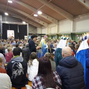 Eine kleine Runde der Frohnleitner Sternsinger nahm am Samstag, dem 13. Jänner beim Treffen der steirischen Sternsinger in Bad Gleichenberg teil. Mit großer Erwartung feierten wir die Heilige Messe, geleitet von Bischof Willi Krautwaschl und vielen Kozelebranten, darunter auch unserem Pater Simon. Lebhaften Eindruck machte die Vorführung des Bischofs, wie Frauen in Tansania und Uganda ihre Freude lautstark artikulieren. Theatervorführung, Kinderanimation mit guter Musik und die schon traditionelle Würsteljause rundeten das Ganze ab.